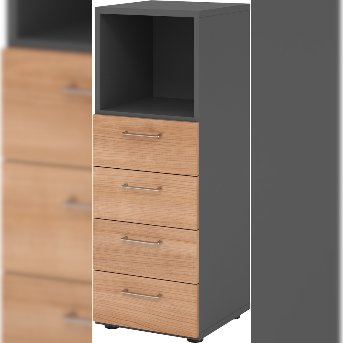 bümö smart Schubladenschrank, Büroschrank in Graphit/Buche mit 4 Schüben - Bürocontainer aus Holz, Container mit Metallgriffen & Soft-Stop Schubladen