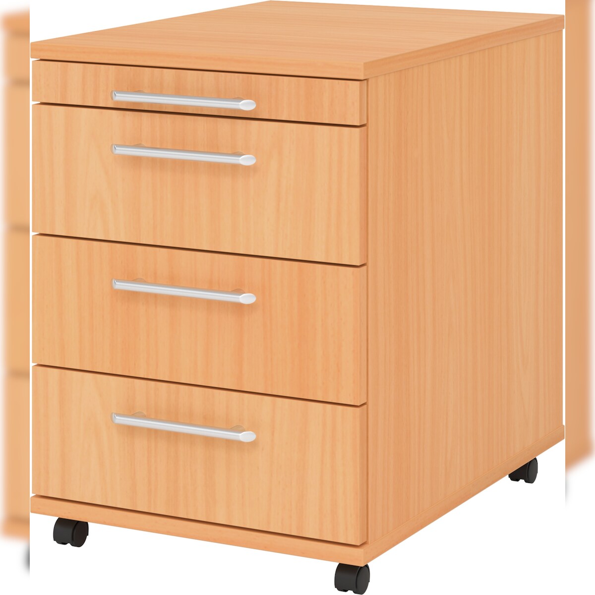 bümö basic Rollcontainer mit Schubladen, Container aus Holz in Buche - Rollwagen für's Büro als Schreibtisch Unterschrank, Bürocontainer od.