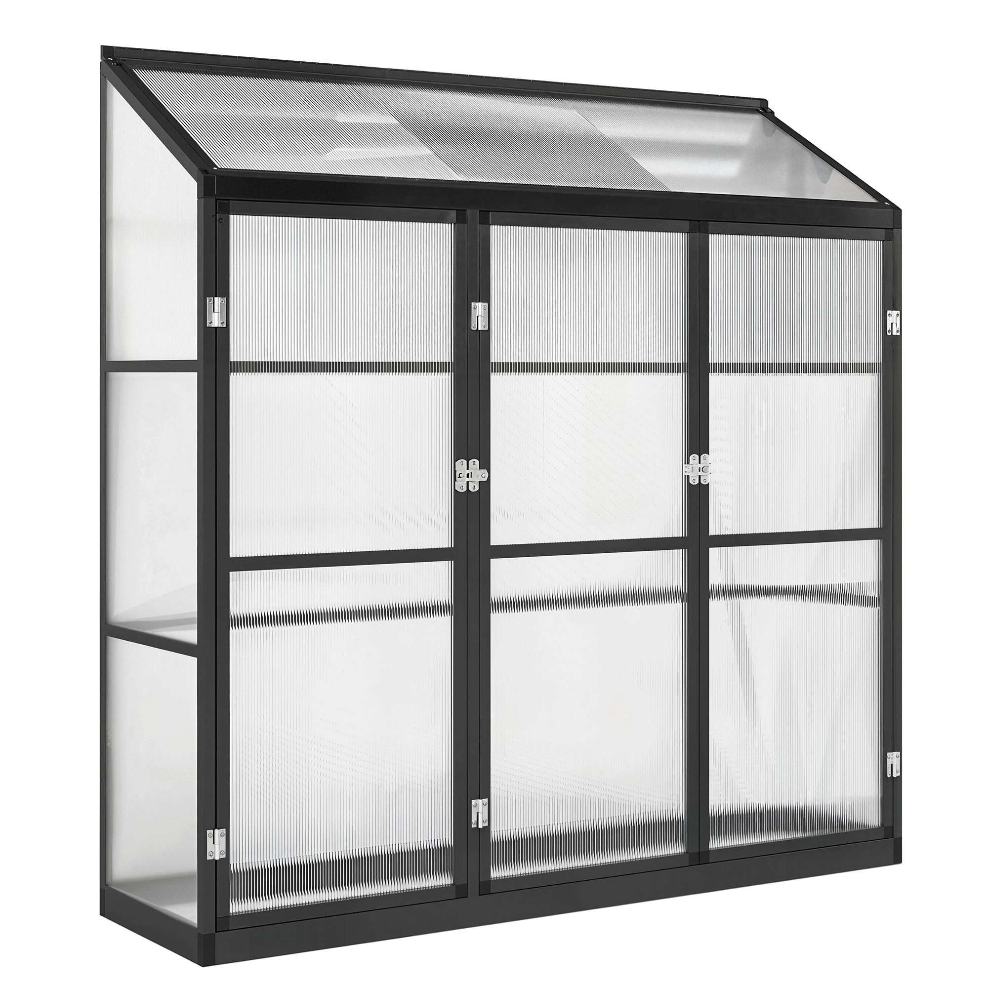 Outsunny Polycarbonate Greenhouse with 3 Hinged Doors, Top Vent, Lean-to Green House, Walk-in Greenhouse, 6 x 1.5ft, Black