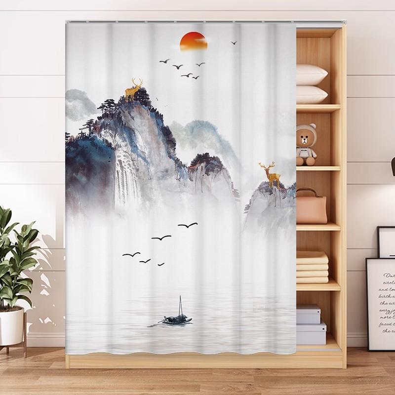 Cabinet cover curtain non perforated door curtain wardrobe cover cloth bookshelf shoe rack debris cover dust-proof cloth curtain