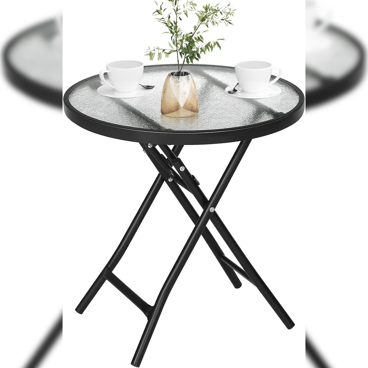 Klapptisch 46x47,5cm, aus gehärtetem Glas, Gartentisch, Beistelltisch, Bistrotisch Balkontisch mit verdicktem Stahlrahmen, Schwarz+transparent