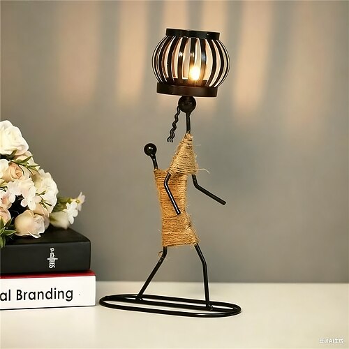 Portacandele in metallo nordico, scultura astratta, personaggio, decorazioni, statuette fatte a mano, decorazioni per la casa, regali artistici, alimentato a batteria, 1 pezzo