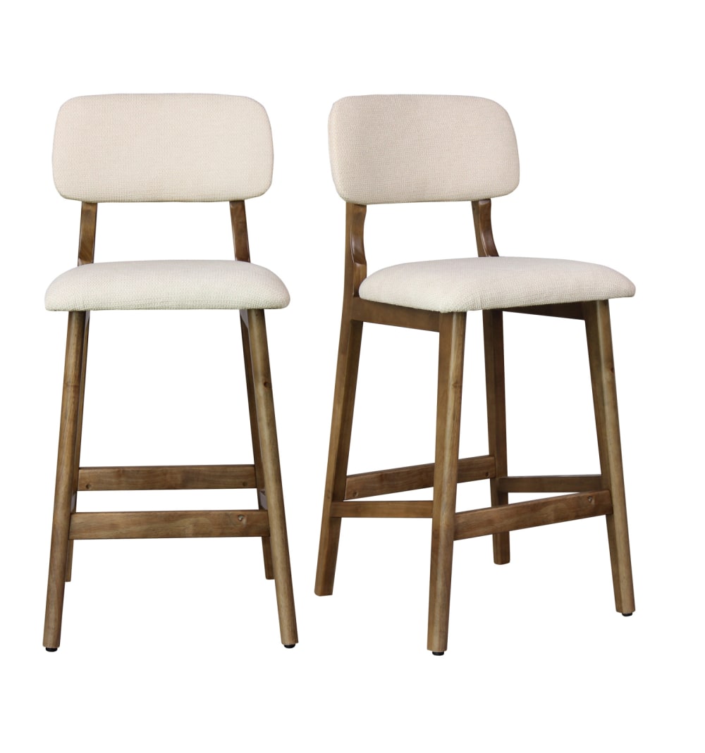 Tabouret de bar en bois patiné noyer et Tissu Trendy Ecru (x2)