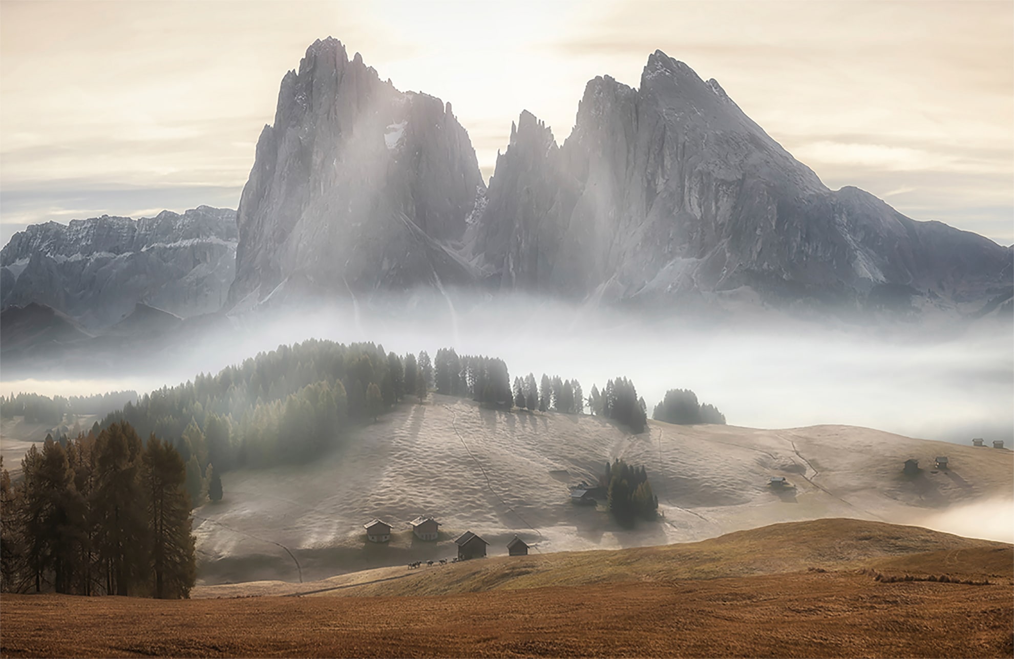 Papermoon Fototapete "Photo-Art GWANGSEOP EOM, NEBLIGE BERGE" bunt B/L: 2,5mm x 1,86mm, Bahnen: 5 Stk. St.