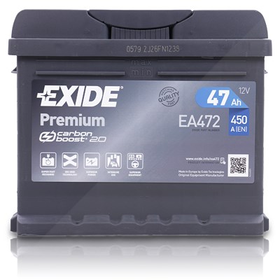 Exide EA472 Premium Carbon Boost 47 Ah 450 A [Hersteller-Nr. EA472] für Mg, Mazda, Seat, BMW, Porsche, Anadol, Suzuki, Toyota, Nissan, Opel, Ford Otos