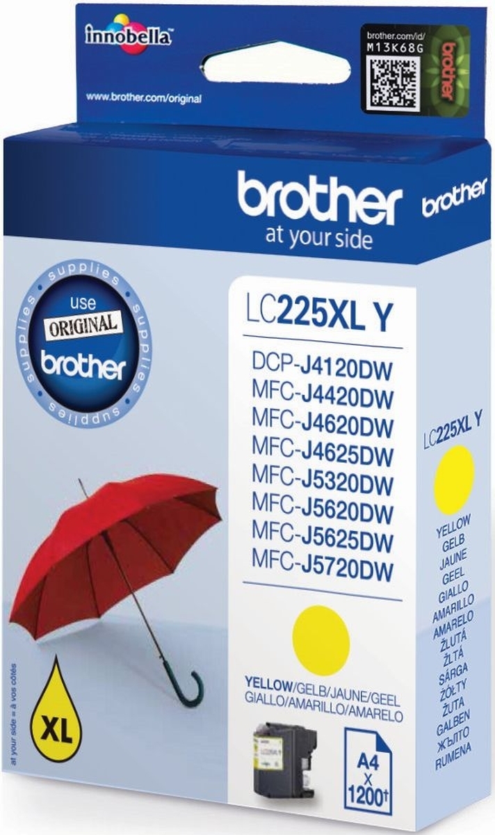 Tintenpatrone Brother LC-225XLY gelb (ca. 1200 Seiten) Packung mit 5 Stück