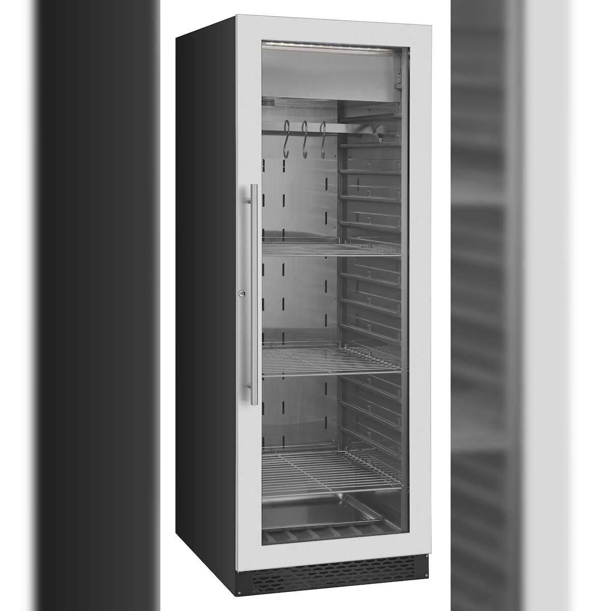 Dry Age Schrank CHARTREUX | 1x abschließbare Glastür + LED | 388 Liter, HxBxT 172x59,5x71cm | +1/+25°C | Edelstahl Schwarz + CHEFGASTRO Geschirrtuch
