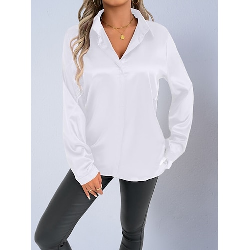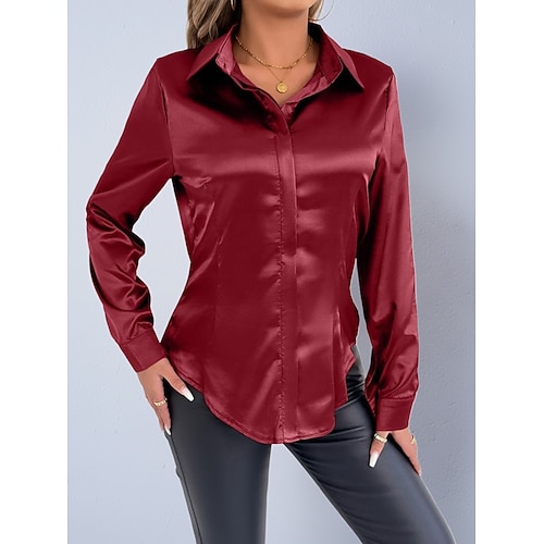 Per donna Camicia in raso Camicia elegante Camicia da lavoro Camicia con Bottoni Tinta unica Elegante Moda Essenziale Manica Lunga Collo ripiegato Colletto a Camicia Top Regolari Lavoro Abbigliamento