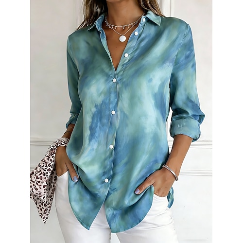 Per donna Camicia Camicia button-down Camicia casual Camicia da Spiaggia Stampato Grafico Elegante Classico Casual Manica Lunga Colletto a Camicia Top Regolari Quotidiano Ferie Uscire Blu Nero Rosa