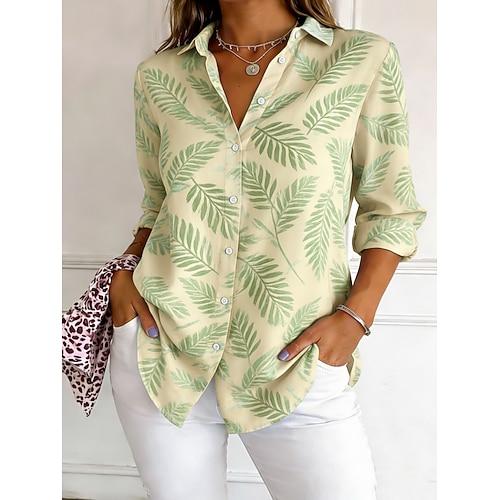 Per donna Camicia Camicia button-down Camicia casual Camicia da Spiaggia Stampato Grafico Foglia Elegante Classico Casual Manica Lunga Colletto a Camicia Top Regolari Quotidiano Ferie Uscire Giallo