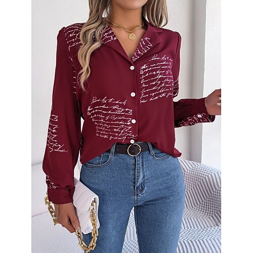 Per donna Camicia Camicia button-down Camicia casual Bottoni Lettera Elegante Classico Moderno Manica Lunga Colletto a Camicia Top Regolari Quotidiano Ferie Uscire Blu Bianco Vino Estate Primavera