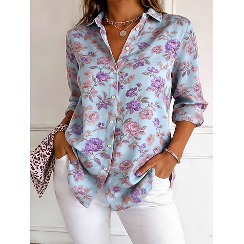 Per donna Camicia Camicia button-down Camicia casual Camicia da Spiaggia Stampato Floreale Grafico Elegante Classico Casual Manica Lunga Colletto a Camicia Top Regolari Quotidiano Ferie Uscire Blu