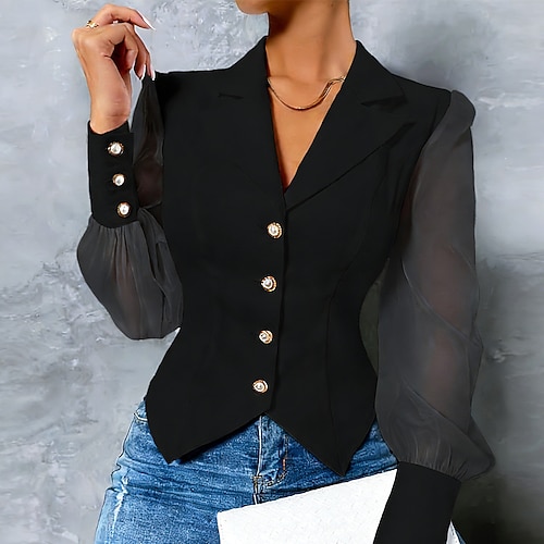 Per donna Camicia elegante Camicia con Bottoni Blusa Tunica Rete Bottoni Tinta unica Semplice Elegante Moda Formale Manica Lunga Collo ripiegato Top Regolari Quotidiano Lavoro Uscire Nero Bianco