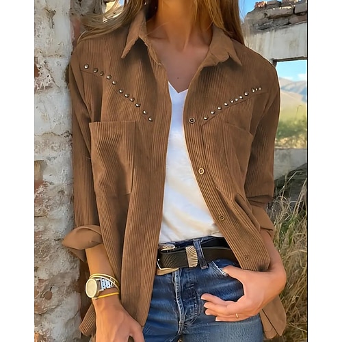 Per donna Camicia Camicia button-down Camicia casual Tasca Bottoni Semplice Vintage Elegante Classico Manica Lunga Colletto a Camicia Top Regolari Quotidiano Ferie Uscire Marrone Verde Estate