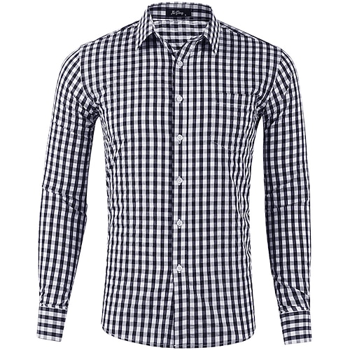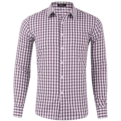 Per uomo Camicia Camicia elegante Camicia casual Camicia a quadri Camicia con Bottoni Nero Rosa Rosso Viola Verde Manica Lunga A quadri Bavero Affari Quotidiano Abbigliamento Misto Cotone Moda