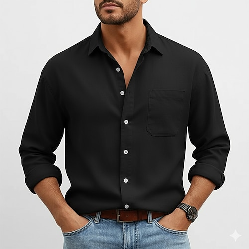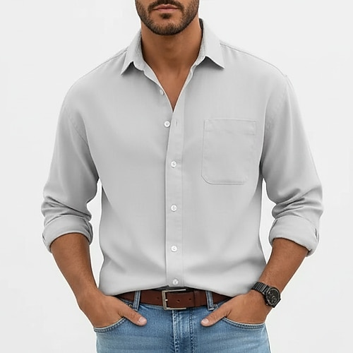 Per uomo Camicia Camicia casual Camicia con Bottoni Nero Bianco Rosa Borgogna Blu marino Manica Lunga Semplice Colletto a Camicia Casuale Quotidiano Tasca Frontale Abbigliamento Elegante Moda Casual