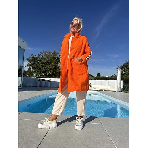 Per donna Cappotto Caldo Bottoni Casual Abbigliamento quotidiano Bavero Vestibilità regolare Manica Lunga Capispalla Bianco Rosso Arancione Autunno Inverno