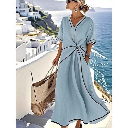 Per donna Abito Lungo Maxi Abito Vestito Casual Moderno Quotidiano Ufficio Vacanza Vestibilità comoda Semplice Manica Corta Scollo a V Blu Cachi Estate Primavera Autunno