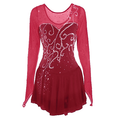 Vestito da pattinaggio artistico Per donna Da ragazza Pattinaggio sul ghiaccio Vestiti Rosso rosa Foro per pollice tintura sfumata Elevata elasticità Professionale Competizione Vestiti da pattinaggio