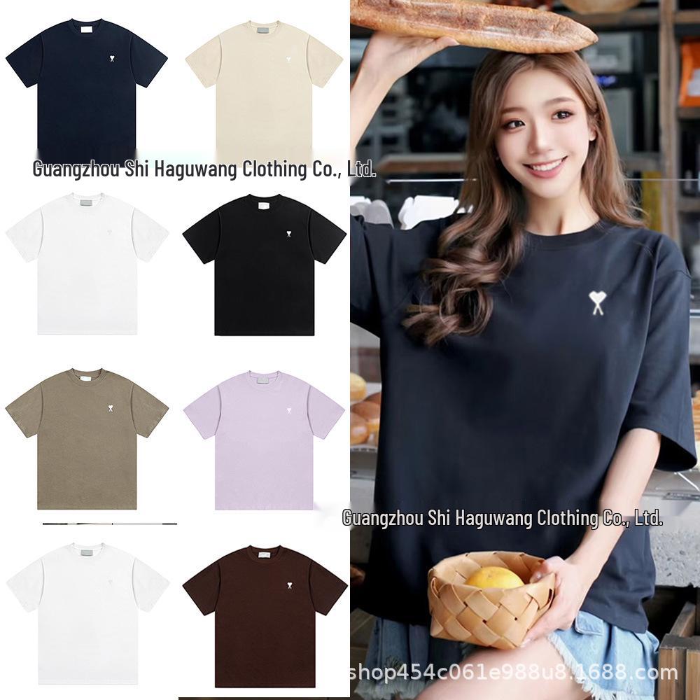 AMI CLAMS Unisex Casual Katoenen T-shirt met Ronde Hals en Kleine Hartborduring cm koningsblauwe kleur