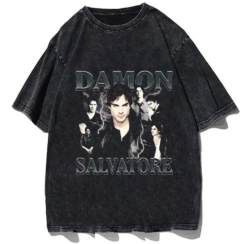25 Gorąca Najmodniejsza Damon Salvatore Vintage Wash Ian Somerhalder Damska Koszulka Street Wear Manga Krótki Rękaw Casual Harajuku cm