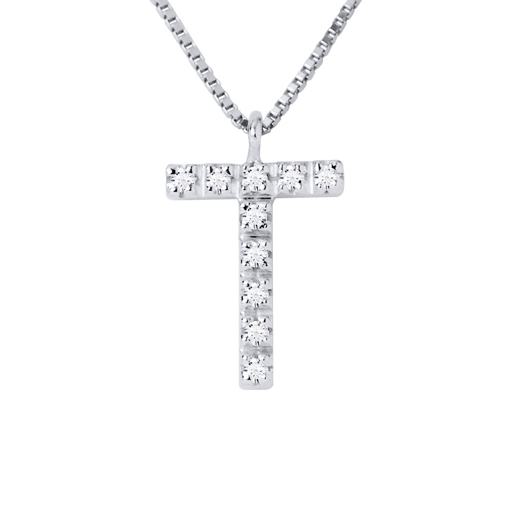 Diadema Womens - Necklace With Diamonds - T - White Gold - One Size | Diadema Sale | Discount Designer Brands