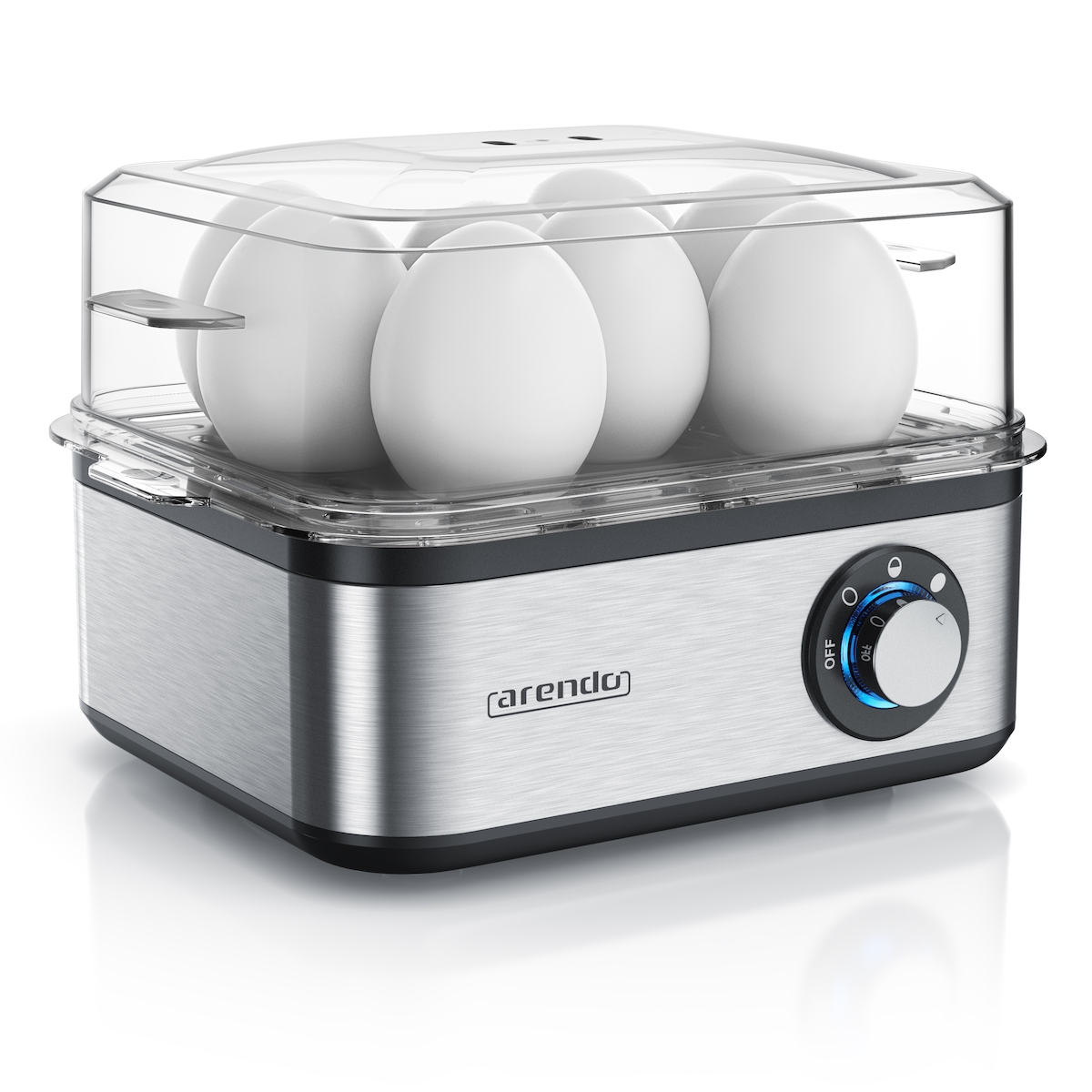 Arendo Eierkocher 8-fach, 500 W, Edelstahl, Härtegrad einstellbar, für 8 Eier, silber/schwarz