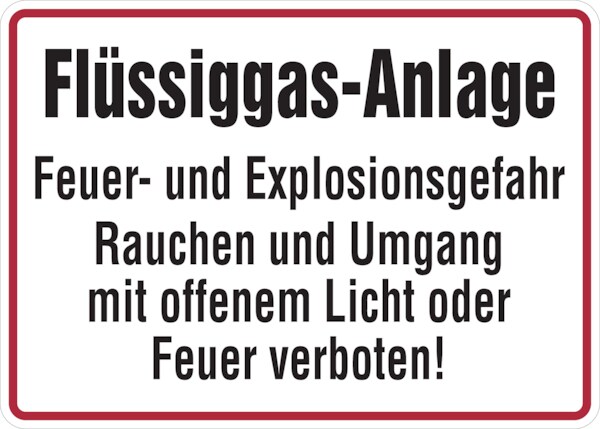 Schild Flüssiggas-Anlage Feuer und Explosionsgefahr..., Kunststoff, 250x150 mm