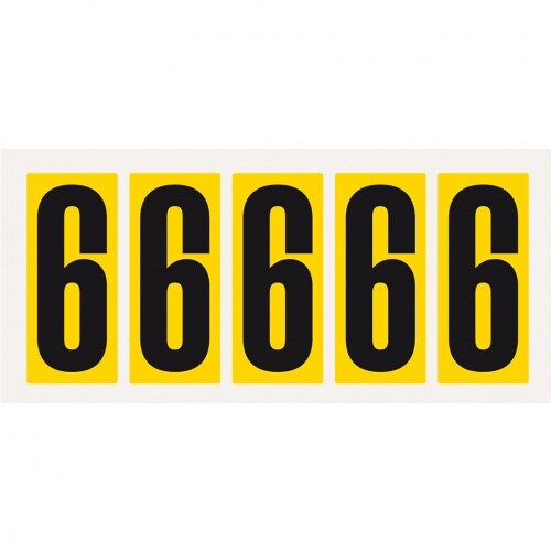 Aufkleber I Ziffer 6, gelb/schwarz, Folie, Schrifthöhe 75mm, 38x88mm, 100 Stück/Packung