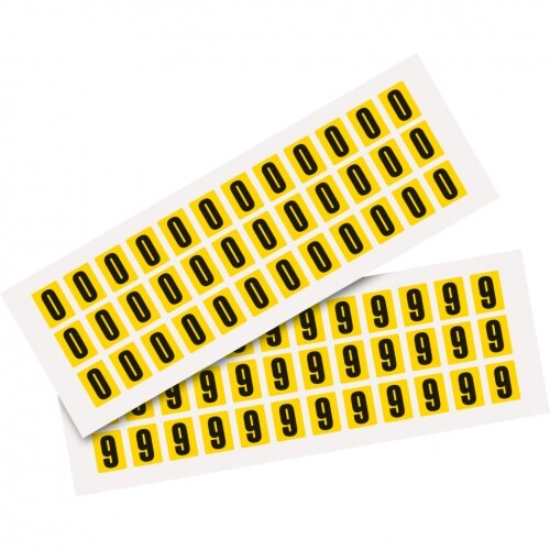 Aufkleber I Kombipackung Ziffer 0-9, gelb/schwarz, Folie, SH 15mm, 14x19mm, 72 je Ziffer/Packung