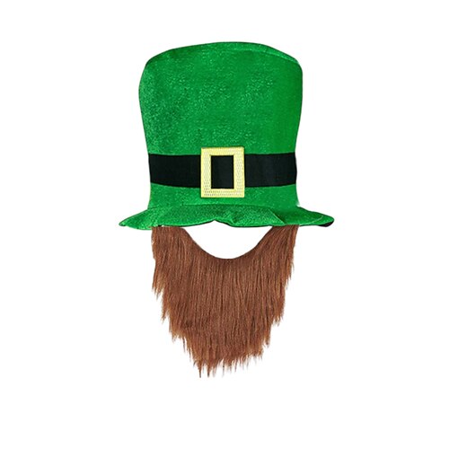 cappello a cilindro verde da folletto con barba per il giorno di San Patrizio, cappello di velluto con trifoglio irlandese