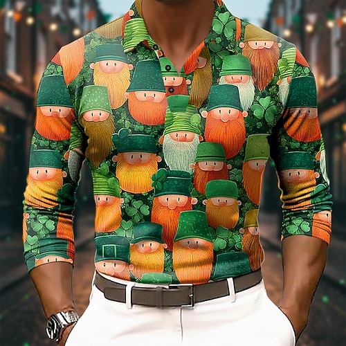 San Patrizio Per uomo Trifoglio Irlanda folletto Maglietta Manica Lunga maglietta Stampa 3D Colletto Mao Colletto Henley Zip a un quarto Camicia Quotidiano Designer Casual Casuale Quotidiano Ferie