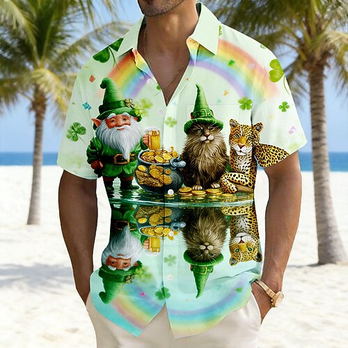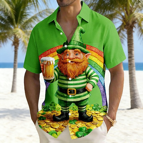 Festa di San Patrizio Per uomo Trifoglio Moneta d'oro folletto Camicia Camicia Estiva Camicia con Bottoni Manica Corta Vintage Retrò Ferie Estate Collo ripiegato Stampa 3D Una tasca anteriore Camicia