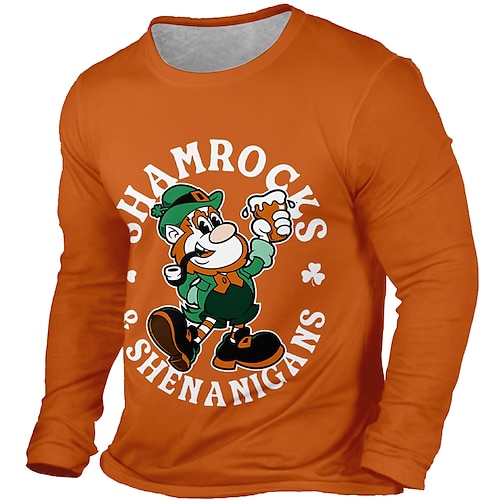 San Patrizio Per uomo Grafico Birra dell'Oktoberfest folletto Maglietta Camicia a Maniche Lunghe Manica Lunga maglietta Stampa 3D Girocollo Camicia Sport Moda Designer Feste Giorno di San Patrizio
