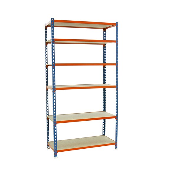 PROREGAL Schwerlastregal Giant Muli | HxBxT 250x100x30cm | 6 Fachböden | Fachlast 150kg | Blau-Orange | Lagerregal Kellerregal Werkstattregal