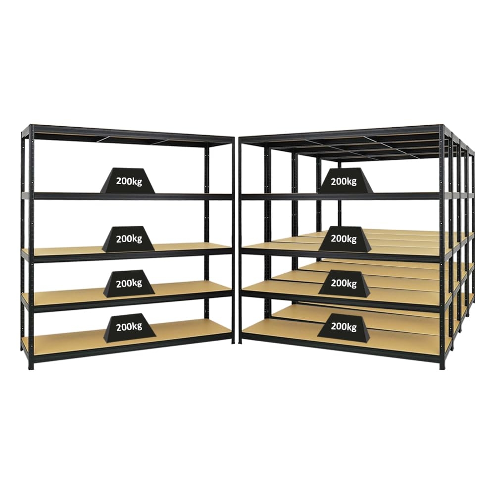 PROREGAL Mega Deal | 4x Schwerlastregal Giant Ragnar | HxBxT 200x100x50cm | 5 MDF-Platten-Ebenen | Fachlast 175kg | Schwarz | Stecksystem Lagerregal