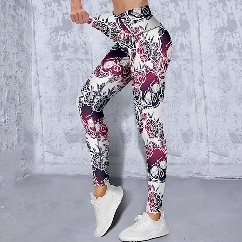 Per donna Sports Gym Leggings Pantaloni da yoga Vita alta Elastene Verde Viola Rosso Leggings corti Floreale Fasciante in vita Sollevamento dei glutei Abbigliamento Abbigliamento Yoga Fitness