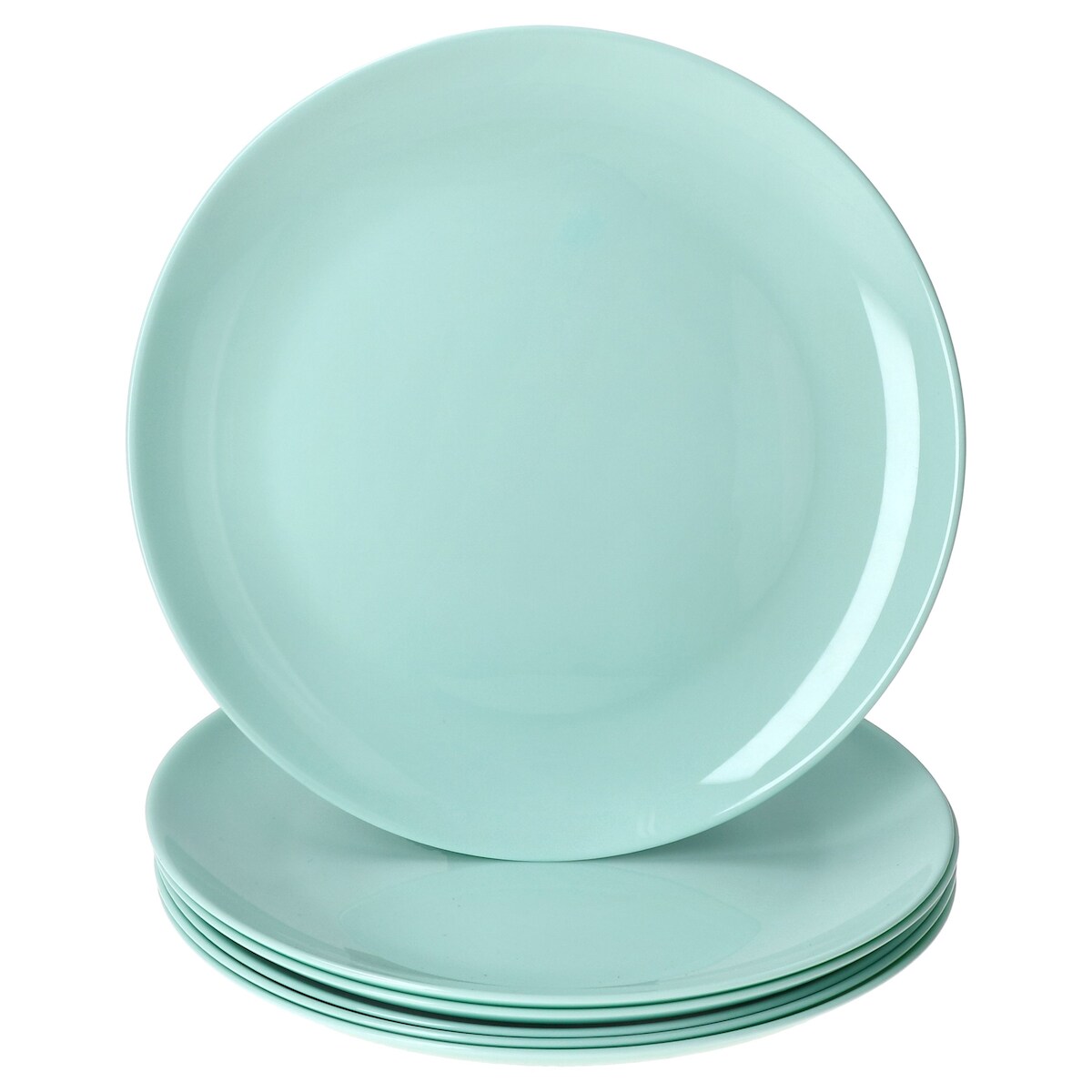6er Set Mint flache Speiseteller aus Glas Ø 24,4 cm Grillplatte modern