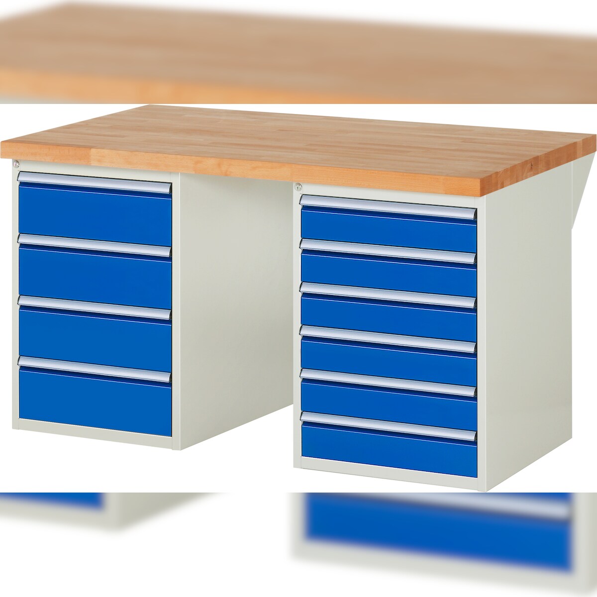 PROREGAL Werkbank Serie 7000 - Modell 7519 | HxBxT 84x200x90cm | 8x Schublade | Schubladenmaße 3x60 + 3x90 + 1x120 + 1x150mm