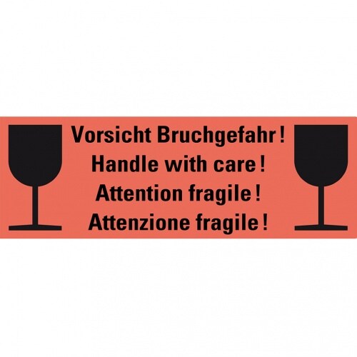 Dreifke® Hinweisetikett Bruchgefahr, 2-sprachig, leuchtrot, Haftpapier, perm.147x50mm, 250/RO