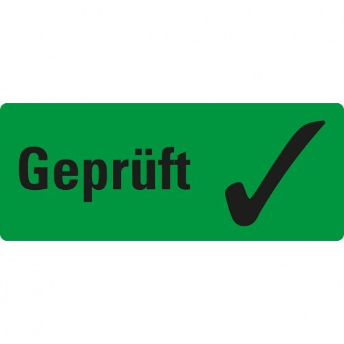 König Werbeanlagen Dreifke® Aufkleber I Organisationsetikett Geprüft, Pikto, grün, Haftpapier, ablösbar, 50x20mm, 500/Rolle