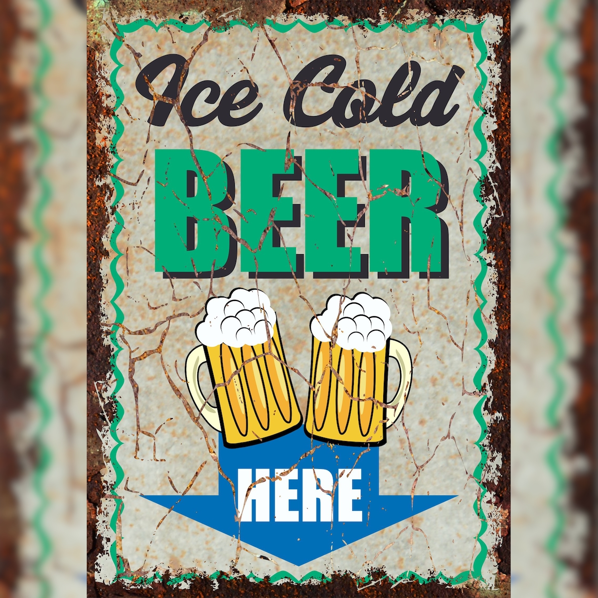 HB-Druck Ice Cold Beer here Deko Schild A4 (210x297mm)