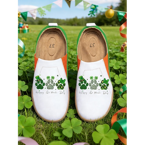 scarpe slip-on da donna con grafica a trifoglio per il giorno di San Patrizio: sneakers leggere in maglia per eventi di festival, feste al pub, sfilate di strada abbigliamento casual per esterni