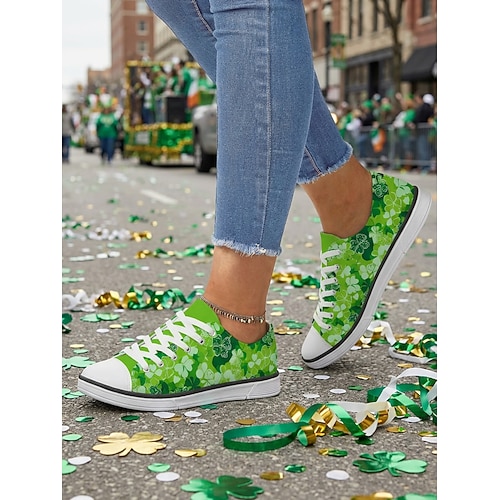 Sneakers basse da donna in tela con stampa trifoglio verde per San Patrizio - classiche scarpe casual con lacci per parate irlandesi, feste di Natale, festival di strada abbigliamento alla moda di