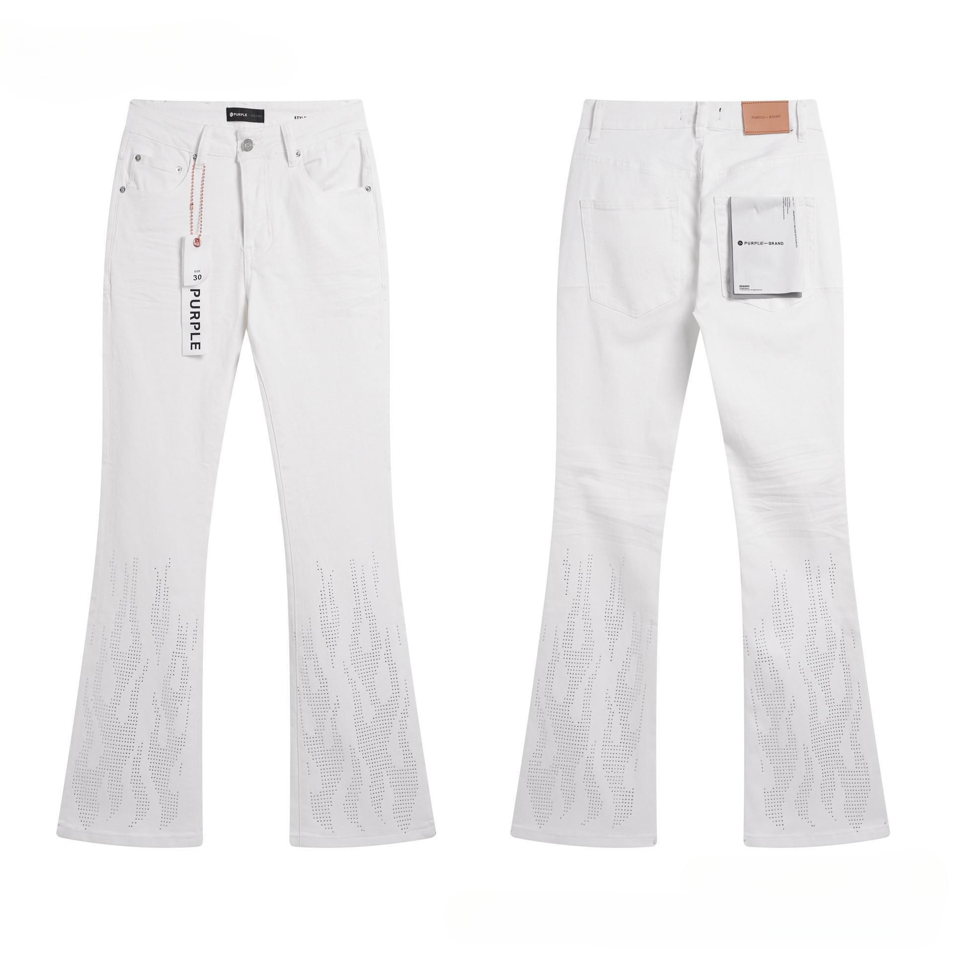 Men's Casual Big Hole Stretch Pants Slim Jeans Men's Multi Hole White Red Black Pants cm white