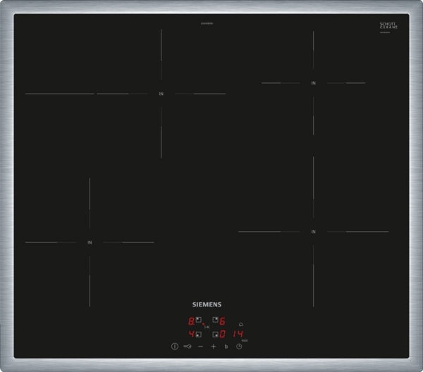 Siemens iQ300 EH645BFB6E Kochfeld Schwarz, Edelstahl Integriert 60 cm Zonen-Induktionskochfeld 4 Zone(n)