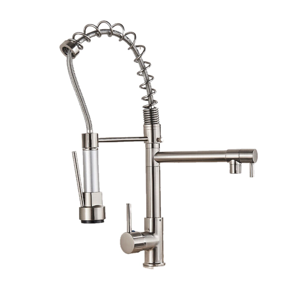 KLARWERK Bernd | Gastronomie Titan-Grau Küchenarmatur mit Feder | Edelstahl Wasserhahn Küche flexibel | Mischbatterie 360 Grad drehbar | Hochdruck 2 Anschlüsse
