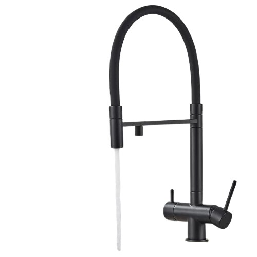 KLARWERK® Lana | Flex 3-Wege Armatur Edelstahl Schwarz matt|Filter Trinkwasser Wasserhahn Küche | Osmose Sprudel Mischbatterie U-Auslauf 3 Anschlüsse