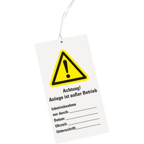 Wartungsanhänger Achtung! außer Betrieb, Kunststoff, 76x147mm, Kabelbinder, 10/VE, ASR A1.3, DIN EN ISO 7010 W001