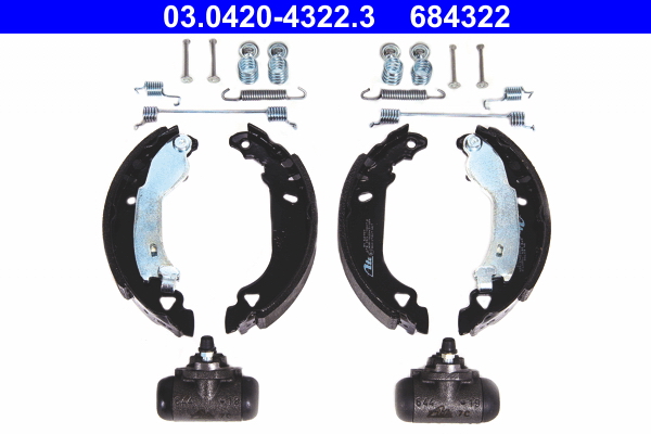 ATE Bremsbackensatz Original Kit 03.0420-4322.3 hinten rechts links mit Radbremszylinder 22,2mm für FIAT LANCIA